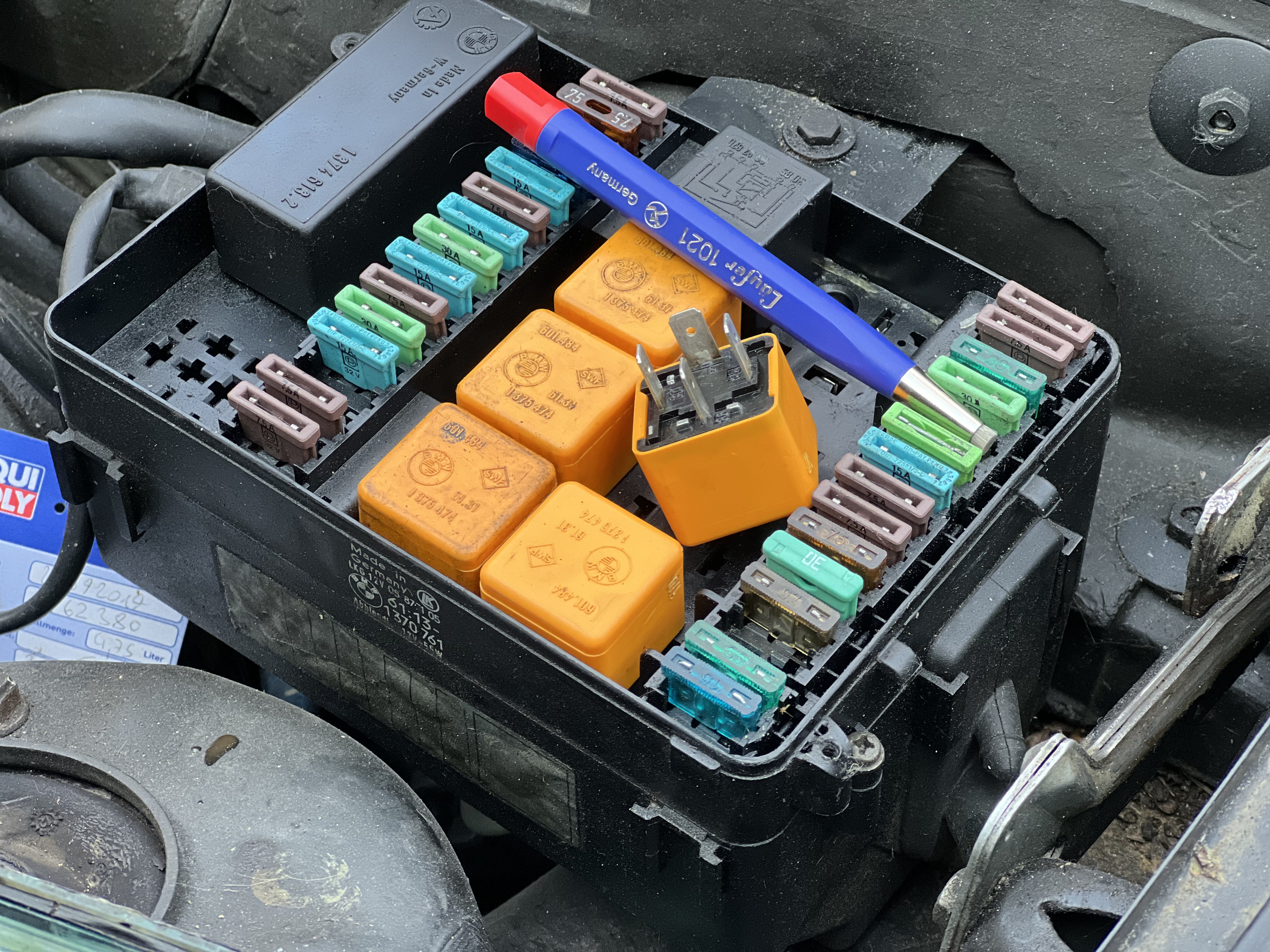 Ich habe alle Relais abgezogen und die Kontakte gereinigt, da der Deckel vom Sicherungskasten defekt ist.