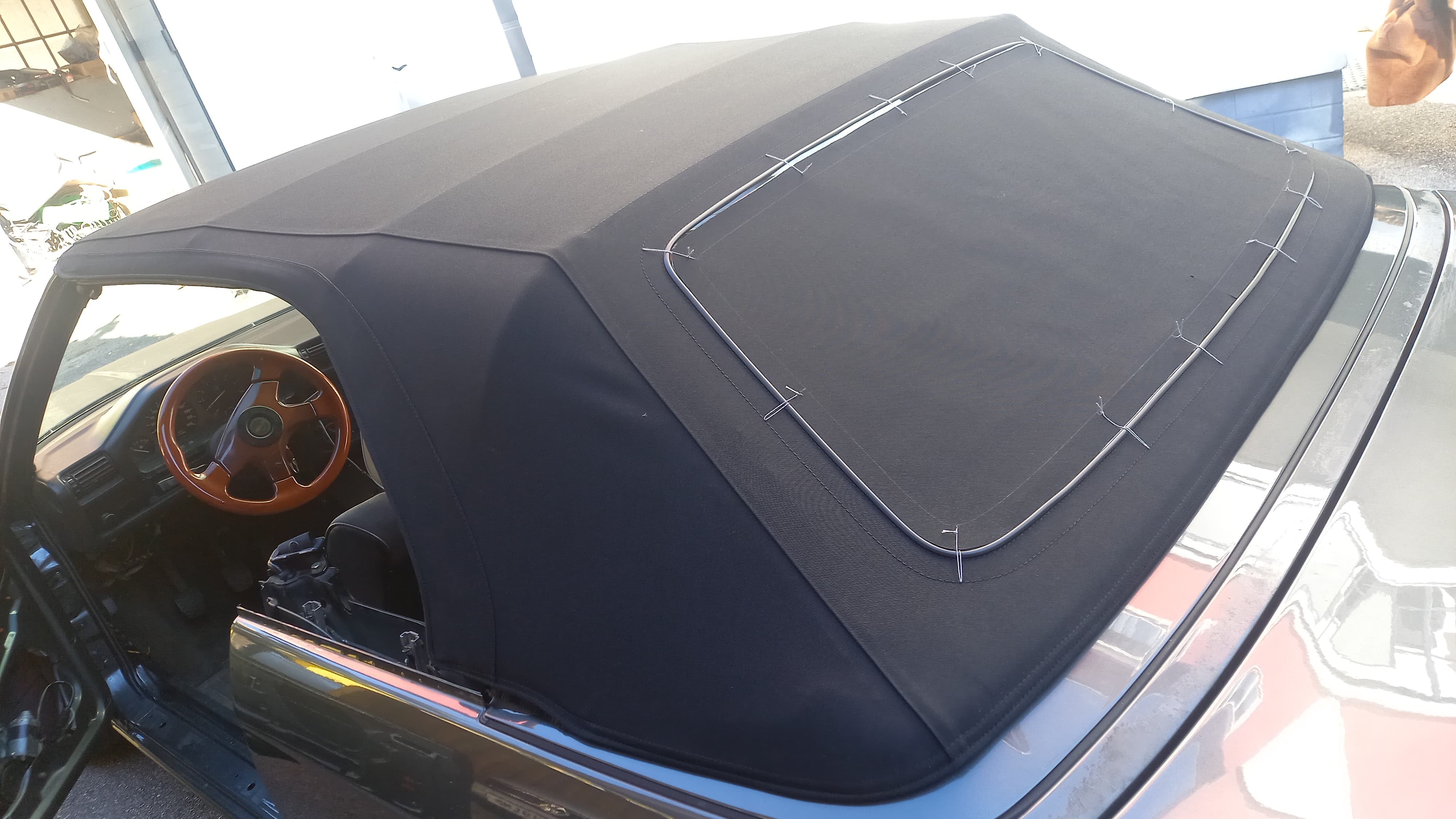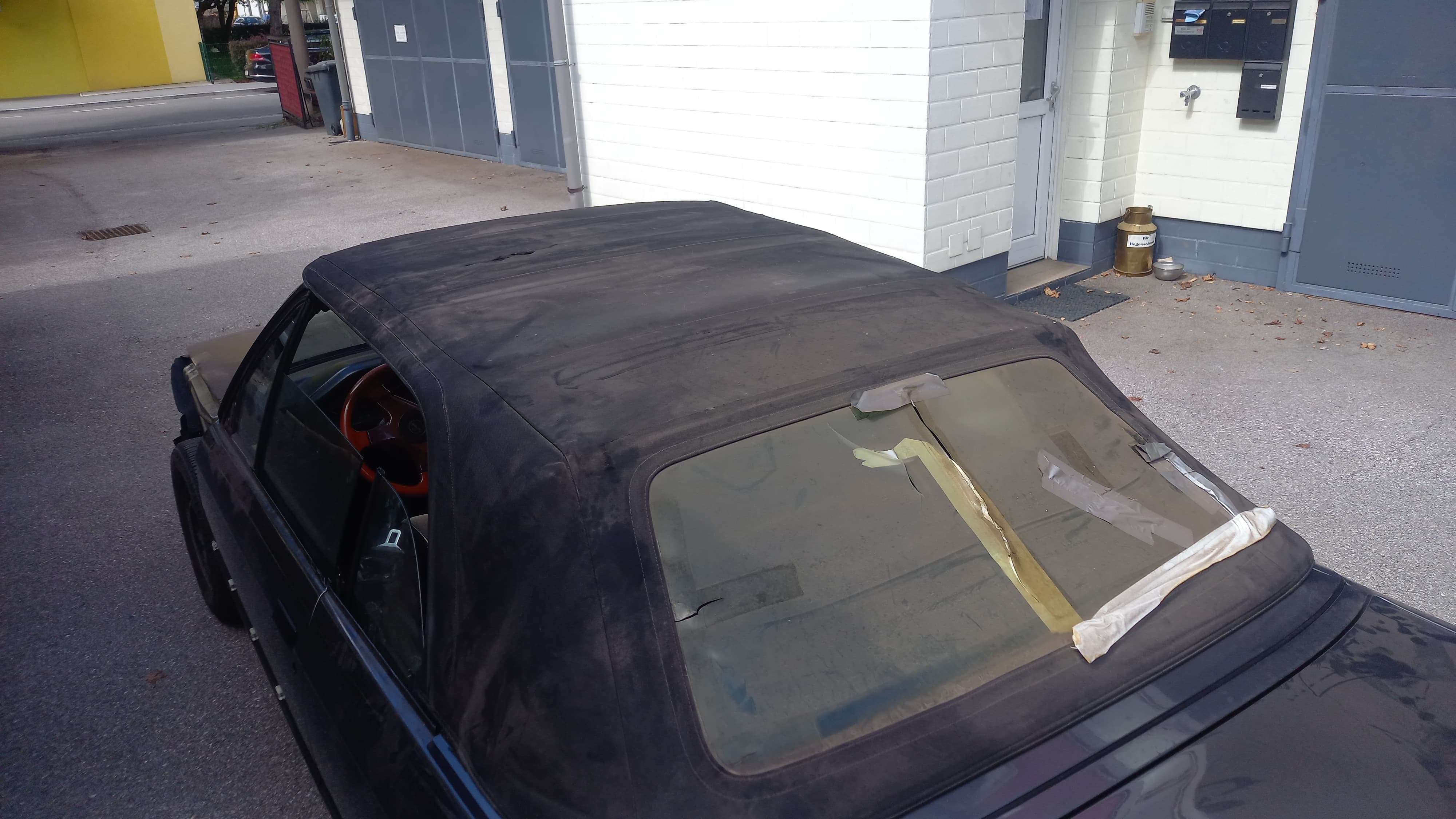 heute haben wir das Verdeck repariert und die Abdeckung des Verdeckkastens erneuert. DAs Ergebnis sieht spitze aus