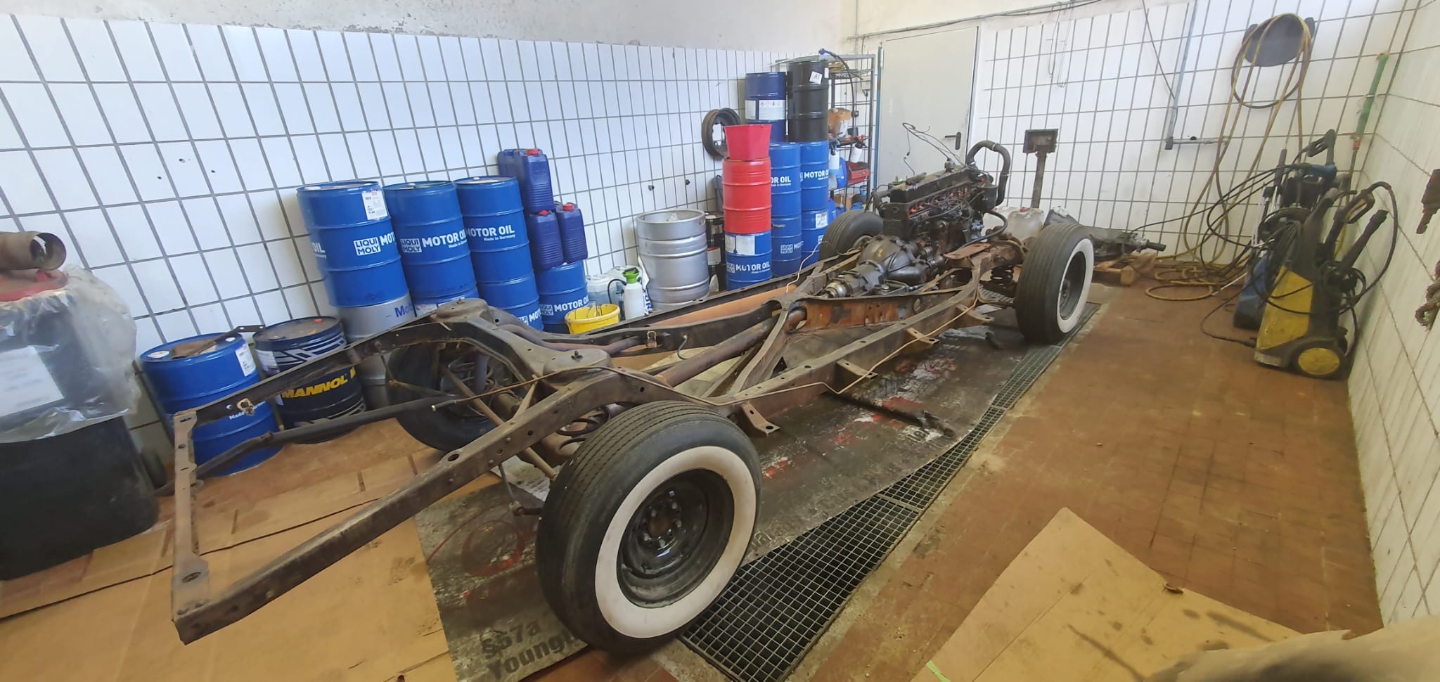 Heute wurde Chassis vom Rahmen getrennt. Jetzt haben einen guten Blick auf die Arbeit - Platz aber auch.