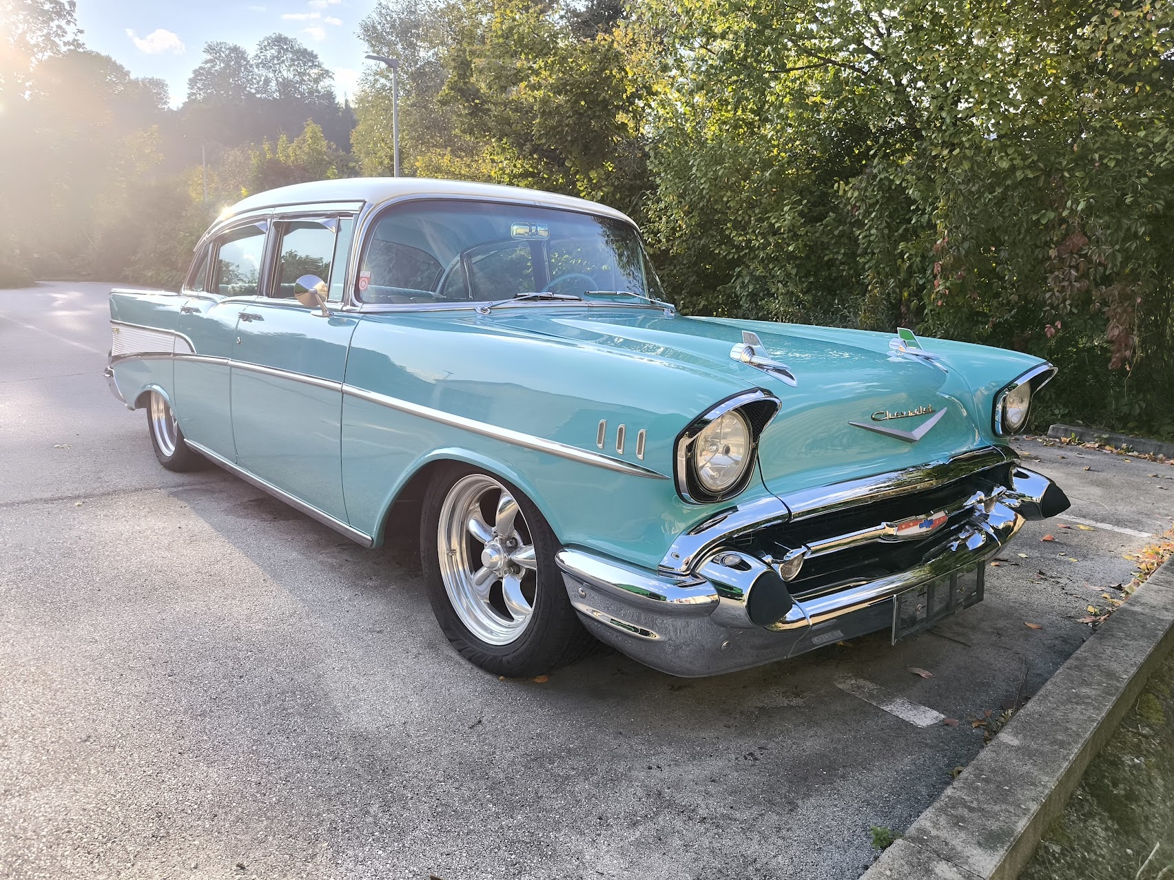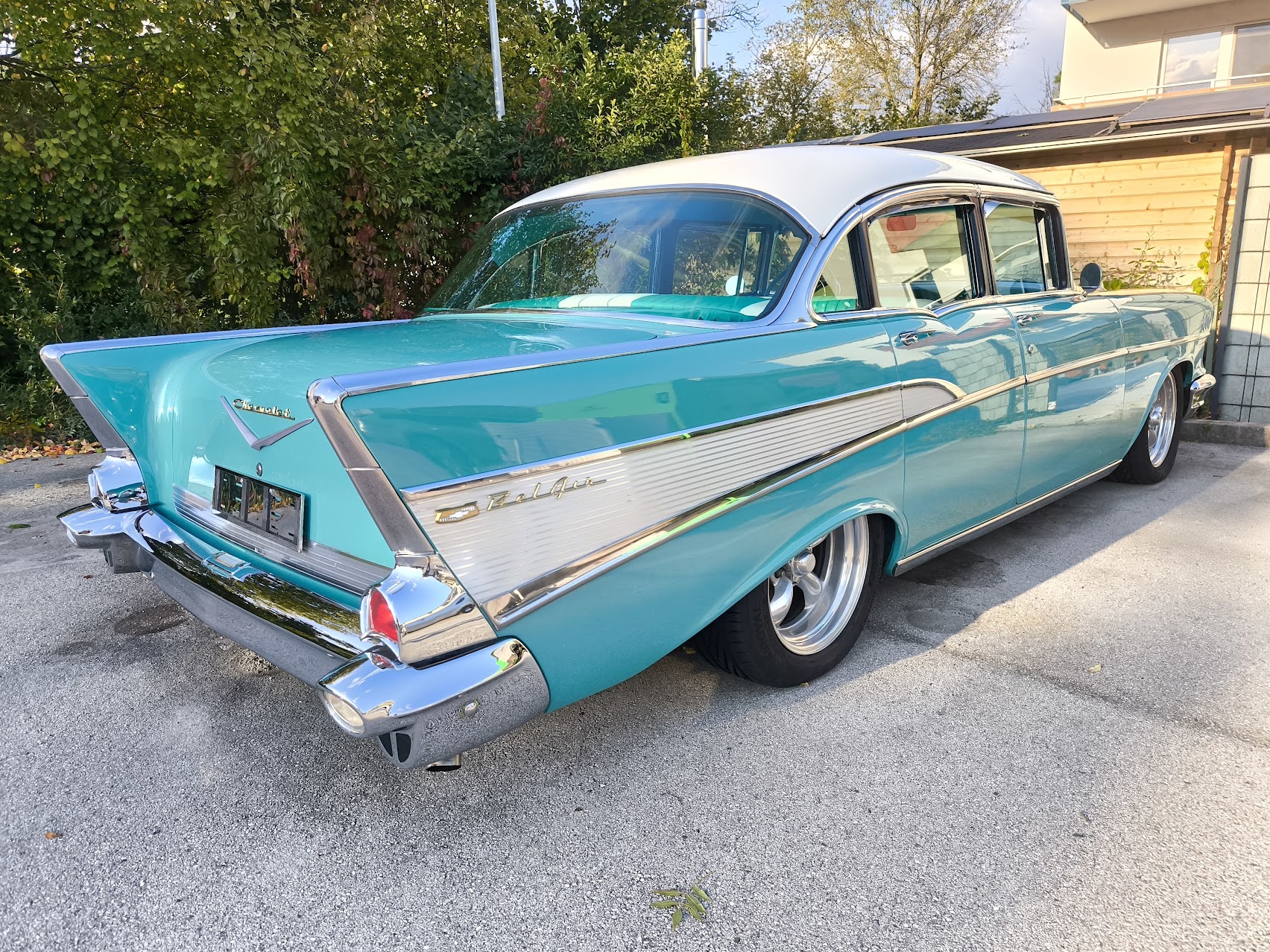 Zum Verkauf steht ein Chevrolet Bel Air 4 Door Sedan aus dem Jahr 1957 – eine gelungene Kombination aus originalgetreuer Oldtimer-Optik und moderner Technik.